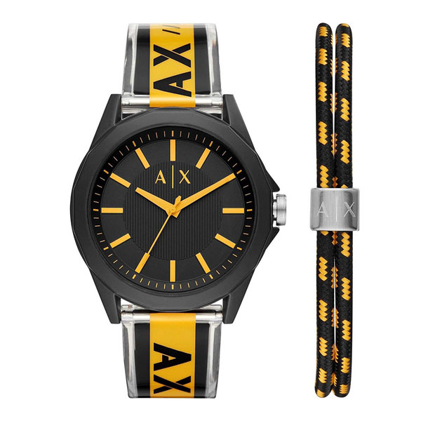 アルマーニエクスチェンジ ギフトボックスセット 時計 メンズ 腕時計 ブレスレット アクセサリー Drexler ドレクスラー イエロー ブラック ナイロン ポリウレタン AX7114 ★