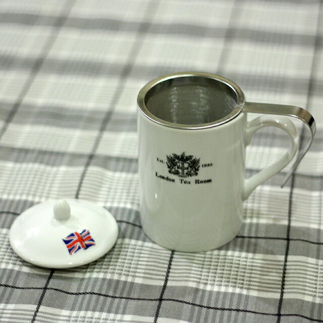 おいしい紅茶を簡単に淹れられる茶漉し付きティーマグはロンドンティールームの開発した商品です。