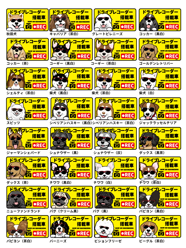 ドライブレコーダーステッカー各犬種一覧は、コチラ★